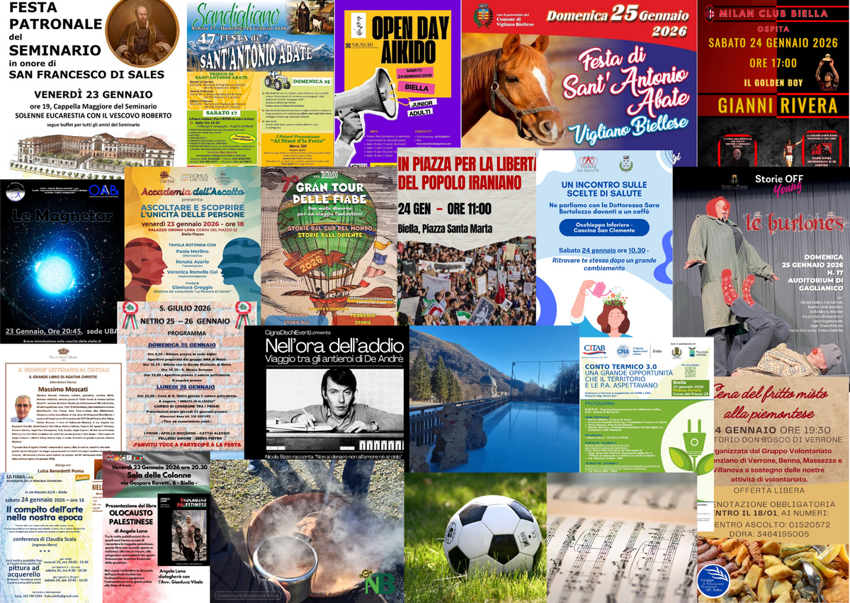 - Vigliano, alle 20.30, al Teatro Erios, l'Associazione Il sogno di Giò Odv, con il patrocinio del comune di Vigliano Biellese, ha in programma un evento ispirato ai valori di Don Bosco